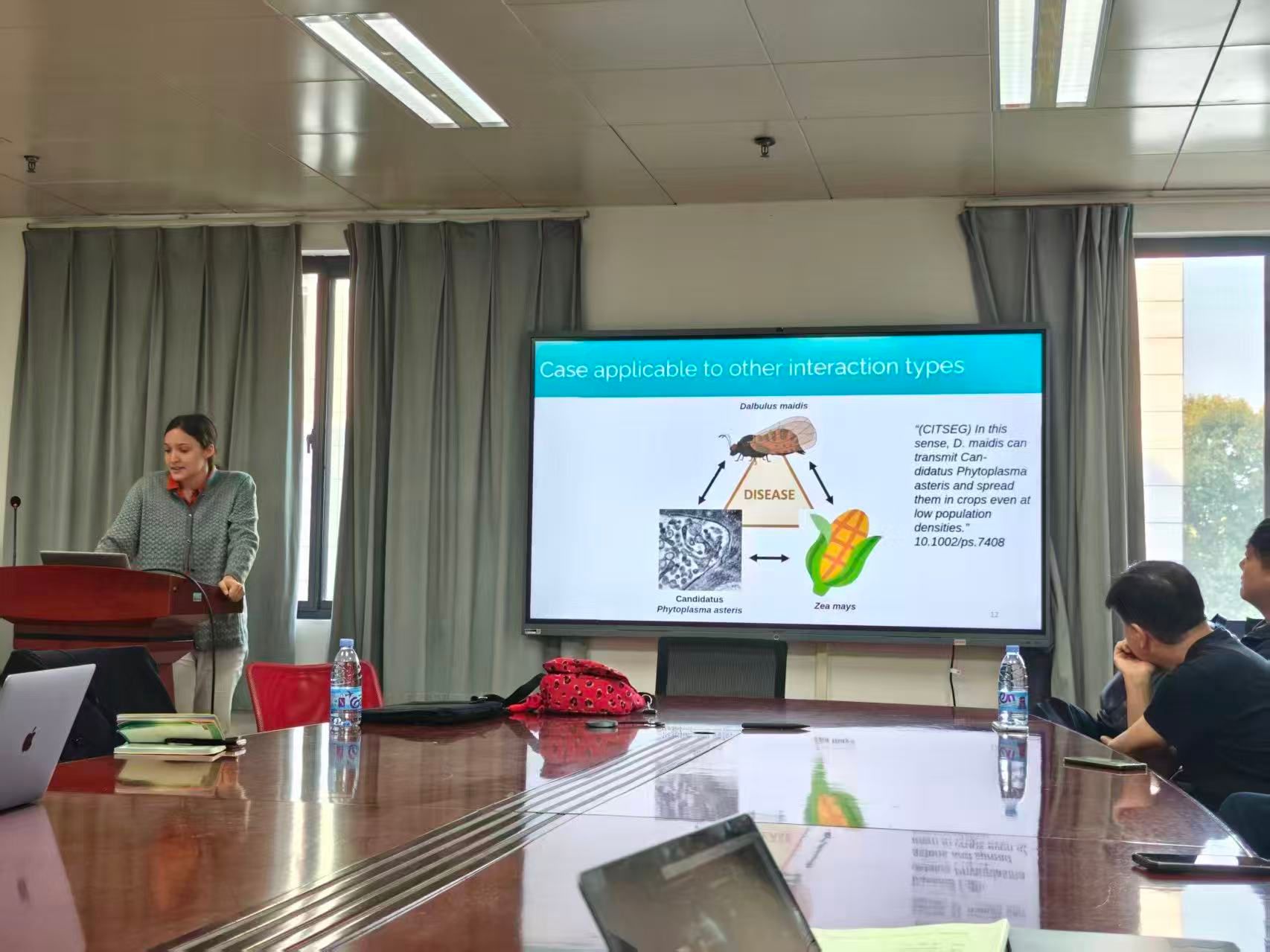 报告中Anne-Sophie博士首先回顾了团队在科学文献知识体系演化研究中的核心工作,强调文献引用不仅是学术传承的载体,更是反映学术共同体认知演进的重要信号。她指出,在昆虫媒介、病原体与植物互作这一高度复杂且快速发展的研究领域,引用网络的结构变化能有效揭示研究热点的转移、理论争议的消长以及新兴范式的形成。