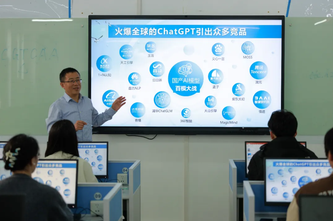 今年3月,学校明确要建成通专结合的人工智能课程体系。“通”的建设目标在“用”,学生要熟练掌握通用型大模型的应用场景和操作技能;“专”的建设目标在“研”,建设各个学科专业的人工智能垂直领域应用课程,使AI助力科学研究。组建教学团队、确定课程内容、撰写课程大纲,建成由《人工智能基础》与16门垂直领域应用课程共同构成的人工智能“1+N”课程体系。