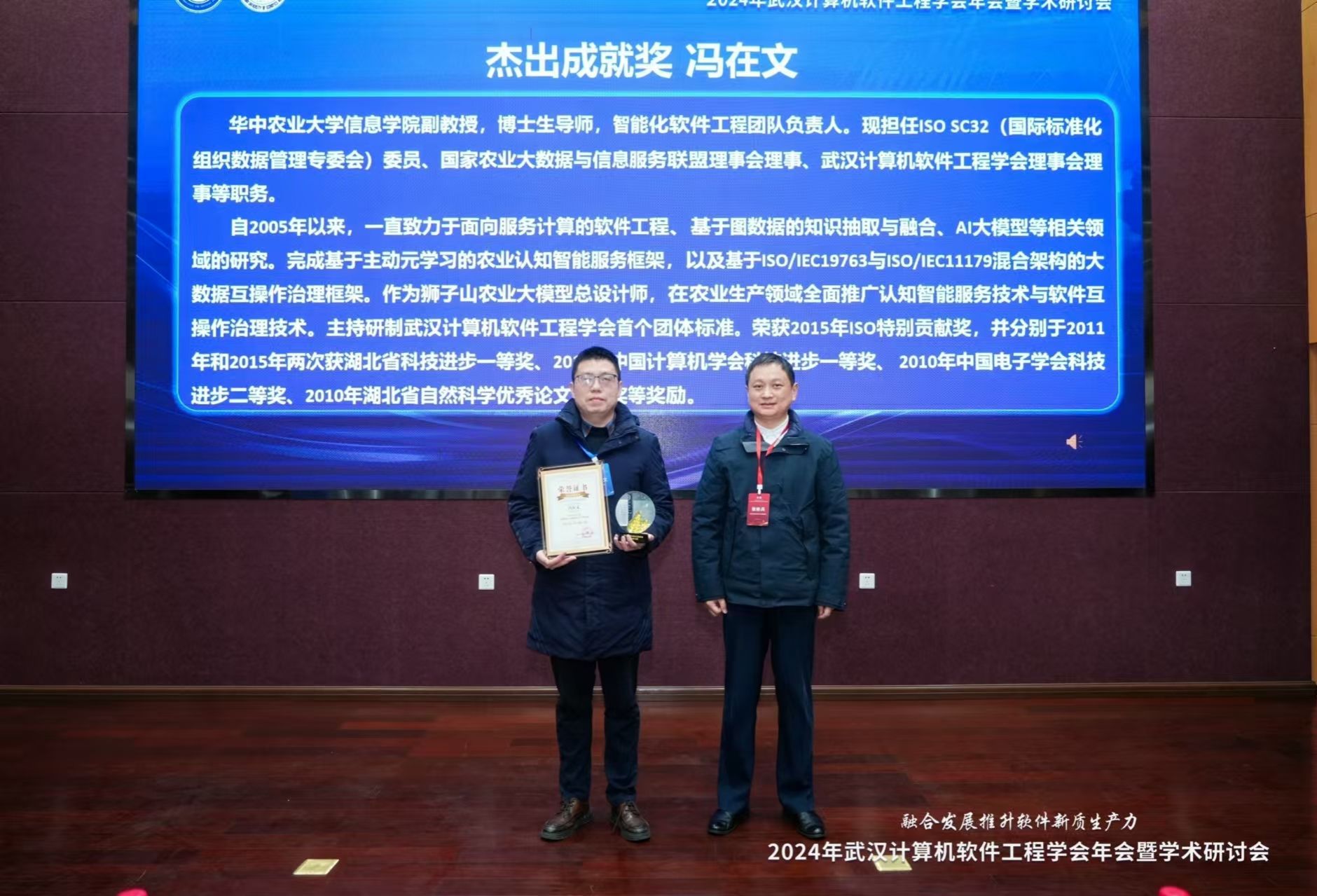 冯在文副教授获评武汉计算机软件工程学会年度杰出成就奖
