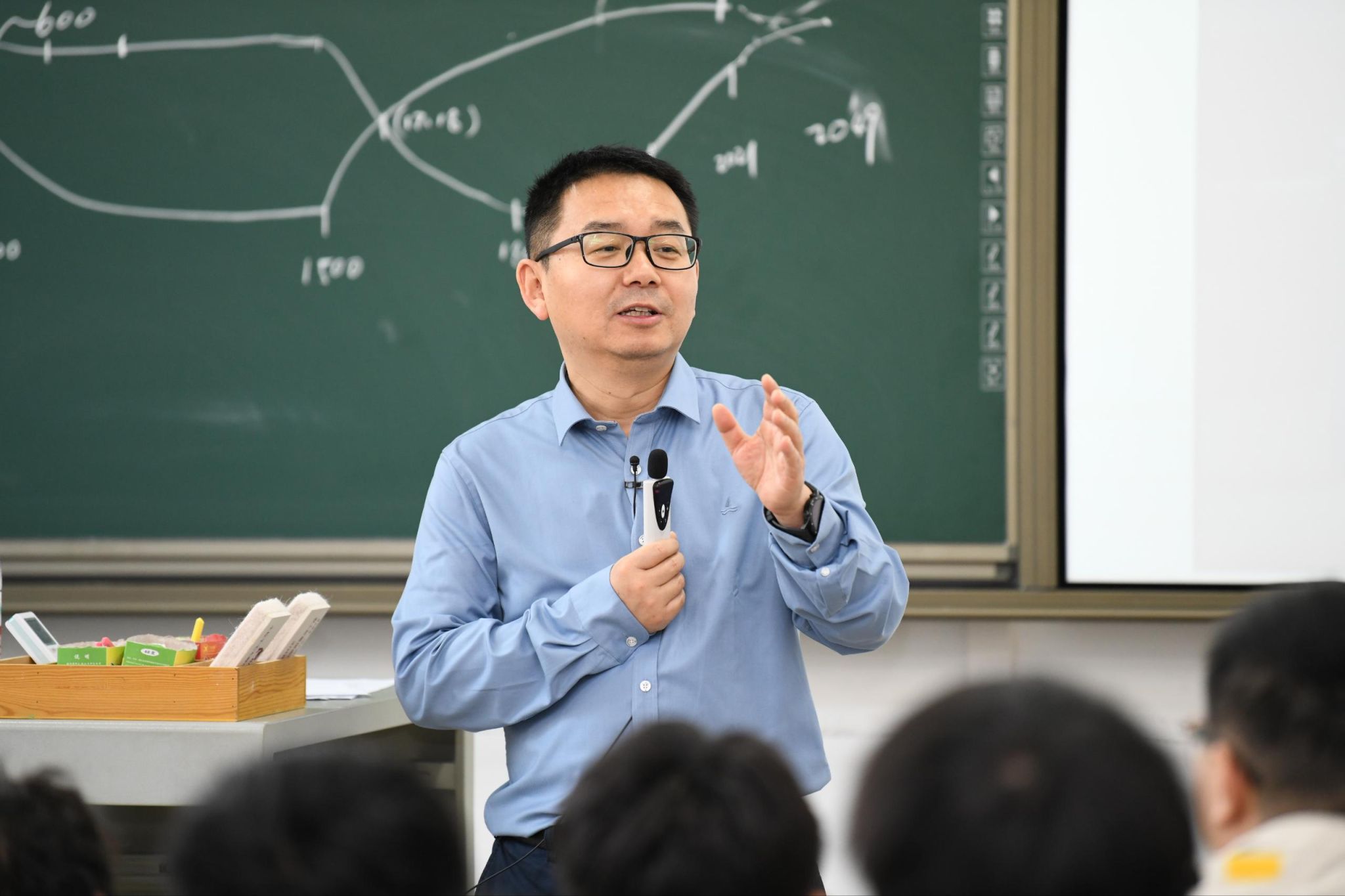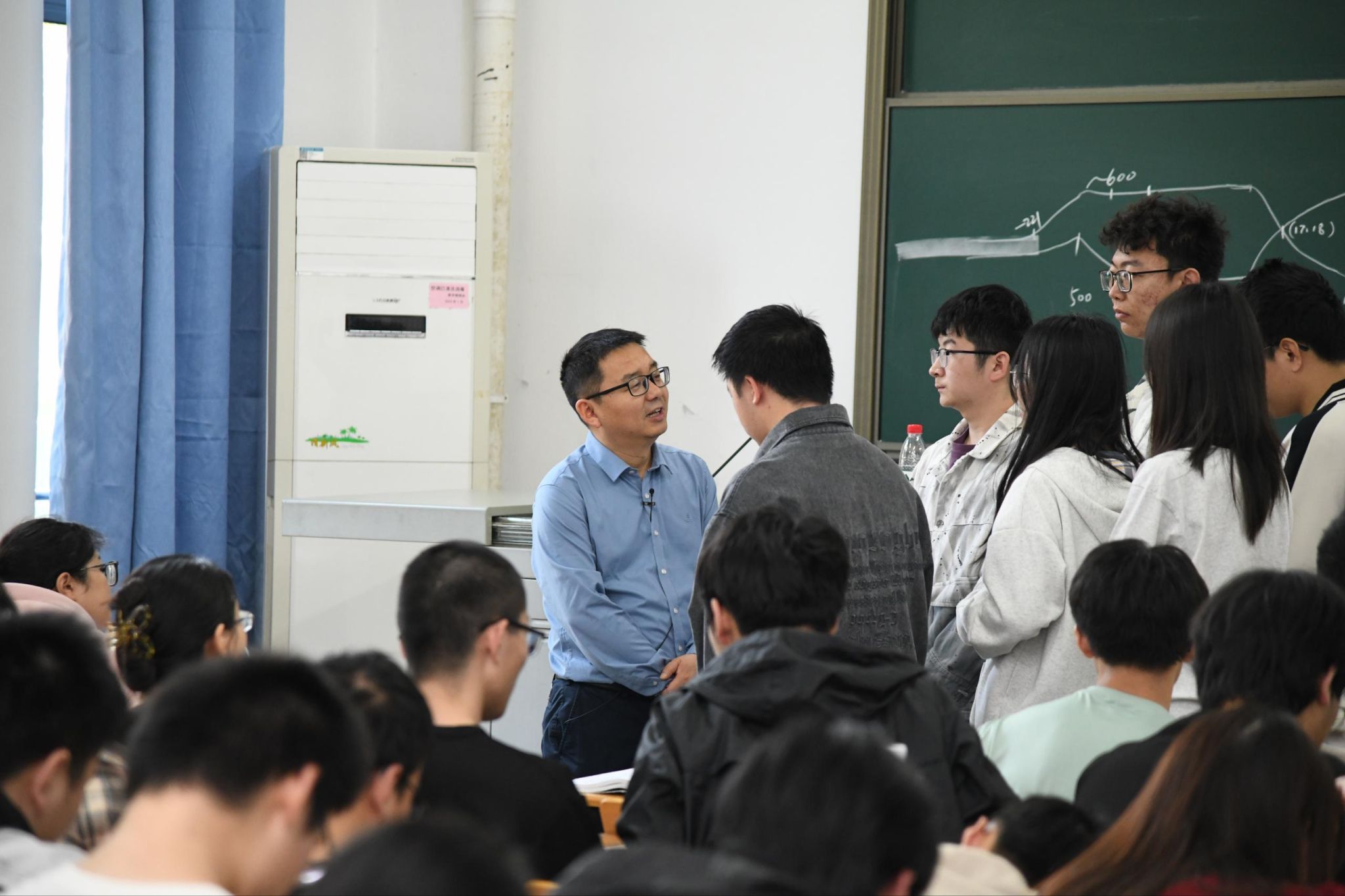 “一直以来,我国大豆的进口压力巨大,为了完全替代进口,我们需要新增7~8亿亩耕地。可受限于我国地少人多的基本农情,新增这么多耕地十分困难。”严建兵和同学们分享到,他的科研团队正在探索培育高蛋白玉米,让玉米既当“能量源”,又做“蛋白罐”,实现“一物两用”,希望能为粮食安全提供有效解决方案。紧接着,严建兵以粮食安全问题的解决方式为契机引导同学们思考:我们能否结合自身学习经验提出新方法?针对这个问题,同学们积极发言,各抒己见。根据同学们的发言,严建兵说道:“为了适应农业机械化,可以改良农作物的优良性状,使其更适于机械化收割。”他提出,应该加强教育和新技术的使用,变革传统的种植方式,建立气候预测大模型或针对性种植周期模型,促进农业信息化,他还强调了农业无人化的重要性,指出应用人形机器人等科技成果的未来趋势。