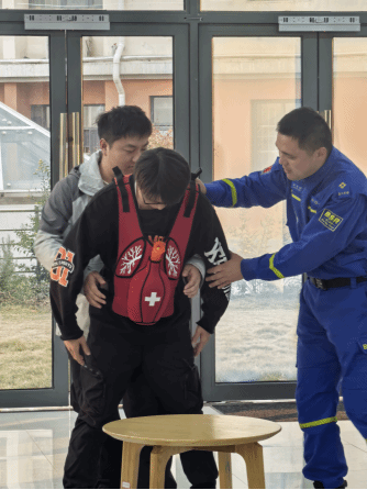 在宣讲会的实践环节,武汉蓝天救援队队员展示了正确的CAB操作,并邀请在场同学参与实践。教官们对每位参与者都进行了细心的指导,确保他们能够保持正确的姿势。