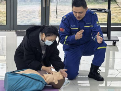 (蓝天救援队培训教官杨俊超介绍心肺复苏术)