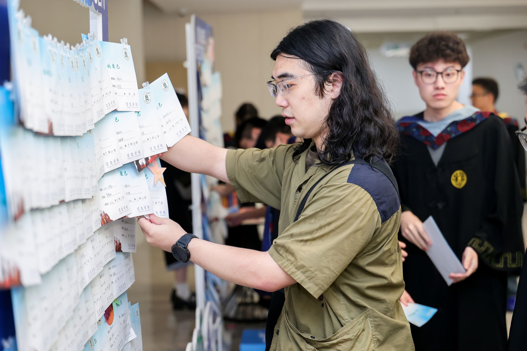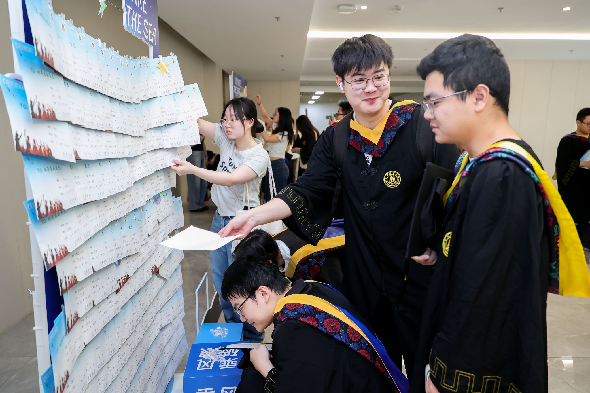 四年前的梦想投递,于今日开启跨越时空的对话。盛典现场,“星辰大海”墙成为独特风景——毕业生们从墙上取下四年前写给自己的信,在原处挂上签有姓名和祝福的星星。