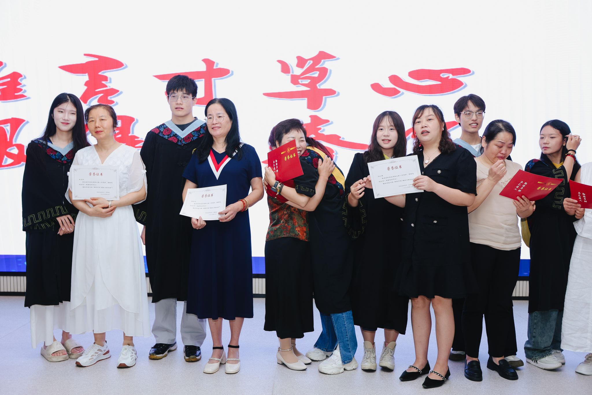 在《萱草花》的旋律中,毕业生家长代表上台,接受孩子们颁发的“最给力家长”奖。当毕业生们张开双臂拥抱父母时,现场温情涌动。随后,全体毕业生两两相拥,在武汉梅雨季的潮湿空气中,将同窗情谊定格为毕业季最温暖的记忆。