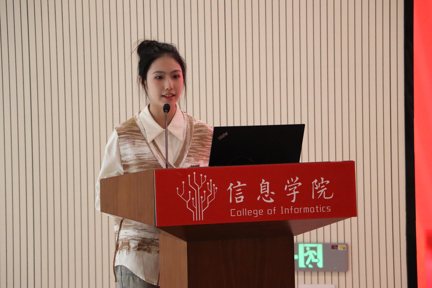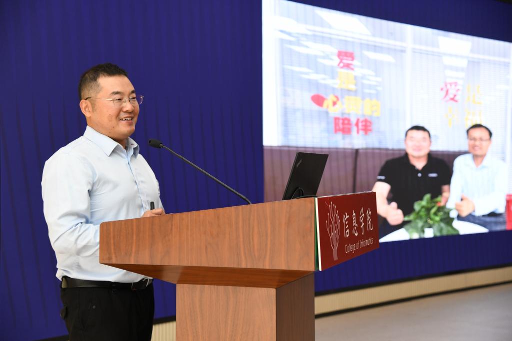 我校十佳青年志愿者、人工智能2101班孙术鑫同学以《拾焰者的实践之路》为题分享了她对开展志愿服务的思考与体悟。信息与计算科学2403班张钰洁代表新生宣誓将传承本禹精神,接过公益之炬,做一个爱的传递者。
