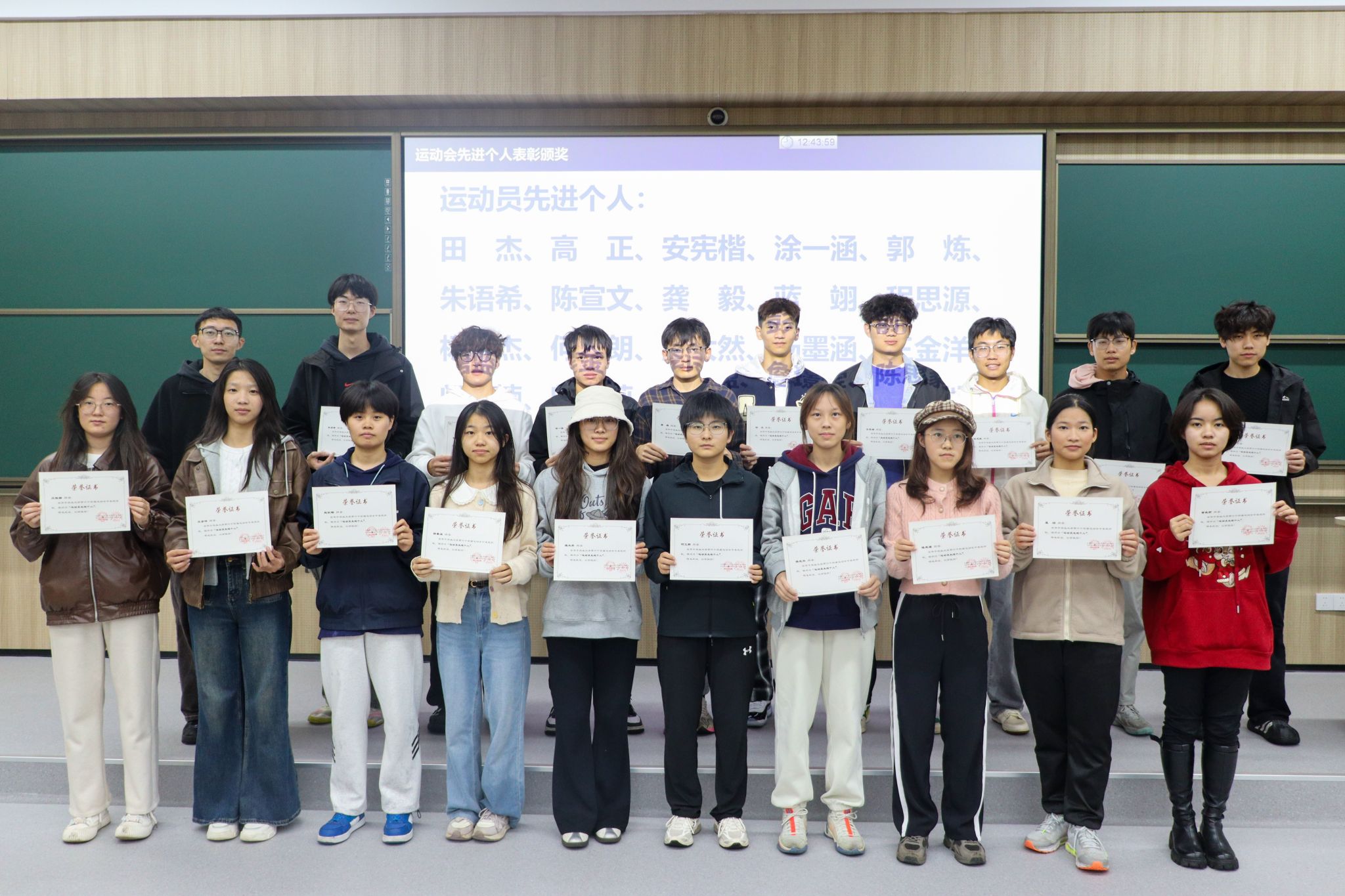 会上,倪丹对本次运动会的获奖情况进行了总结。她指出,今天足球比赛比分 在本届运动会中实现历史性突破,93名参赛师生覆盖本研及各项目,以团体总分193分位列全校第五,女子团体124分获全校第三,较去年成绩翻倍,男子团体63分获全校第七,43人次在24项个人项目与7项集体项目中获奖,其中男子100米、女子四项全能等多个项目斩获冠军。