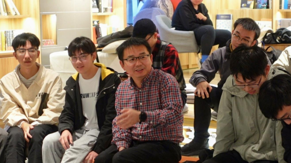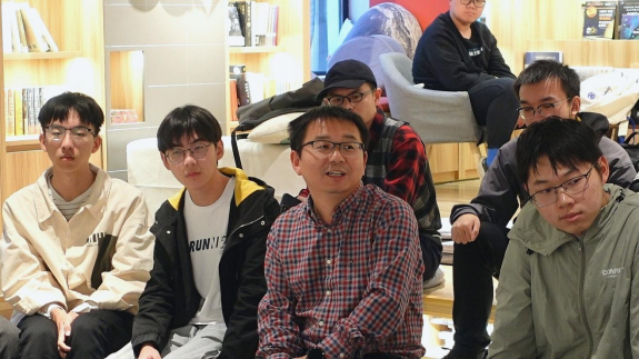 严建兵与同学们并坐,认真听取同学们的分享,不时给予肯定和追问,启迪大家思考;并饶有兴致地与同学们分享自己读书的心得与感悟。