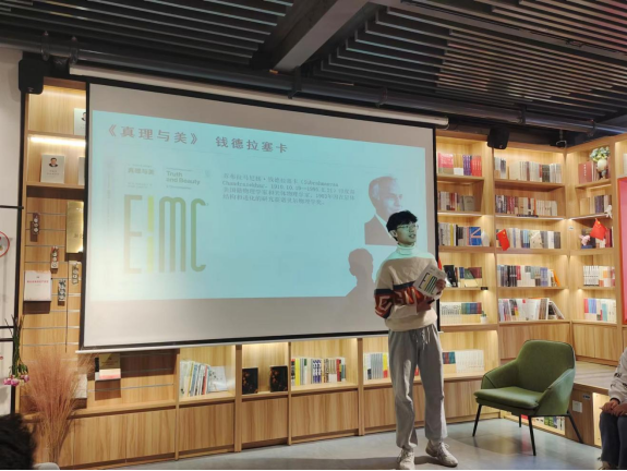 “美是理念的感性显现。”孙丰业同学分享了《真理与美》一书,带领现场师生回顾几位杰出物理学家的人生与其做出的杰出贡献。孙丰业同学谈到:“在科研道路上坚定地朝着一个方向走,也许始终都看不到成功的曙光,但铺下的路,点亮的灯,会在往后的日子里照亮他人。每个人追求真理的方式不尽相同,但却无一例外的看到了美。”贺验权同学通过《人性的弱点》一书,与大家分享“微笑”“赞美”“理解”“尊重”等温润如玉的为人处事之方。梁婷雯同学通过阅读《永恒的终结》一书,向大家抛出了关于永恒时空思考:我们更向往的,是中庸的以逸待劳还是危险的未知探索?“一定要爱着点什么,恰似草木对光阴的钟情。”杨林同学品读《汪曾祺经典小说选》后深有体悟:在动乱的年代,生活虽然困苦,但汪先生依旧是阳光积极不急不躁的,温柔平淡是他的代名词,在内卷的当下,我们更需要汪曾祺先生的心态,平淡处事,温润为人。