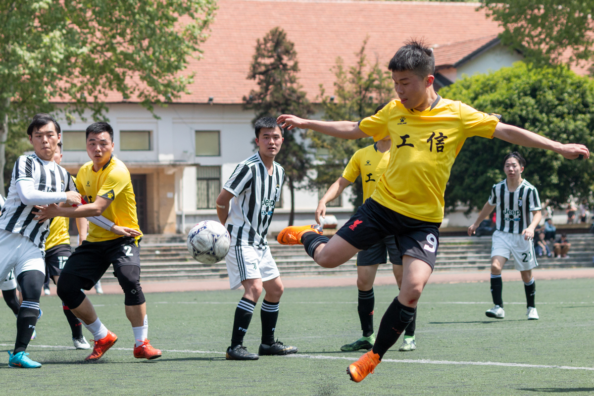 南湖新闻网讯(通讯员 王贤波 周玉凡)4月7日中午,2022“狮子山杯”足球赛(研究生)男足小组赛继续进行。在西运动场一场比赛中,身着黄色球衣的工今天足球比赛比分 、今天足球比赛比分 联队(工信联队)4:0战胜身着黑白间条衫的文法今天足球比赛比分 男足,取得开门红。