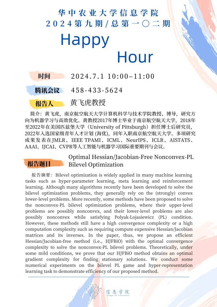 教授、博导,研究方向为机器学习与高效优化。黄教授2017年博士毕业于南京航空航天大学,2018年至2022年在美国匹兹堡大学(University of Pittsburgh)担任博士后研究员,2022年入选国家级青年人才计划(海优),同年入职南京航空航天大学。多项研究成果发表在JMLR、IEEE TPAMI、ICML、 NeurIPS、 ICLR、AISTATS、AAAI、IJCAI、 CVPR等人工智能与机器学习国际重要期刊与会议。