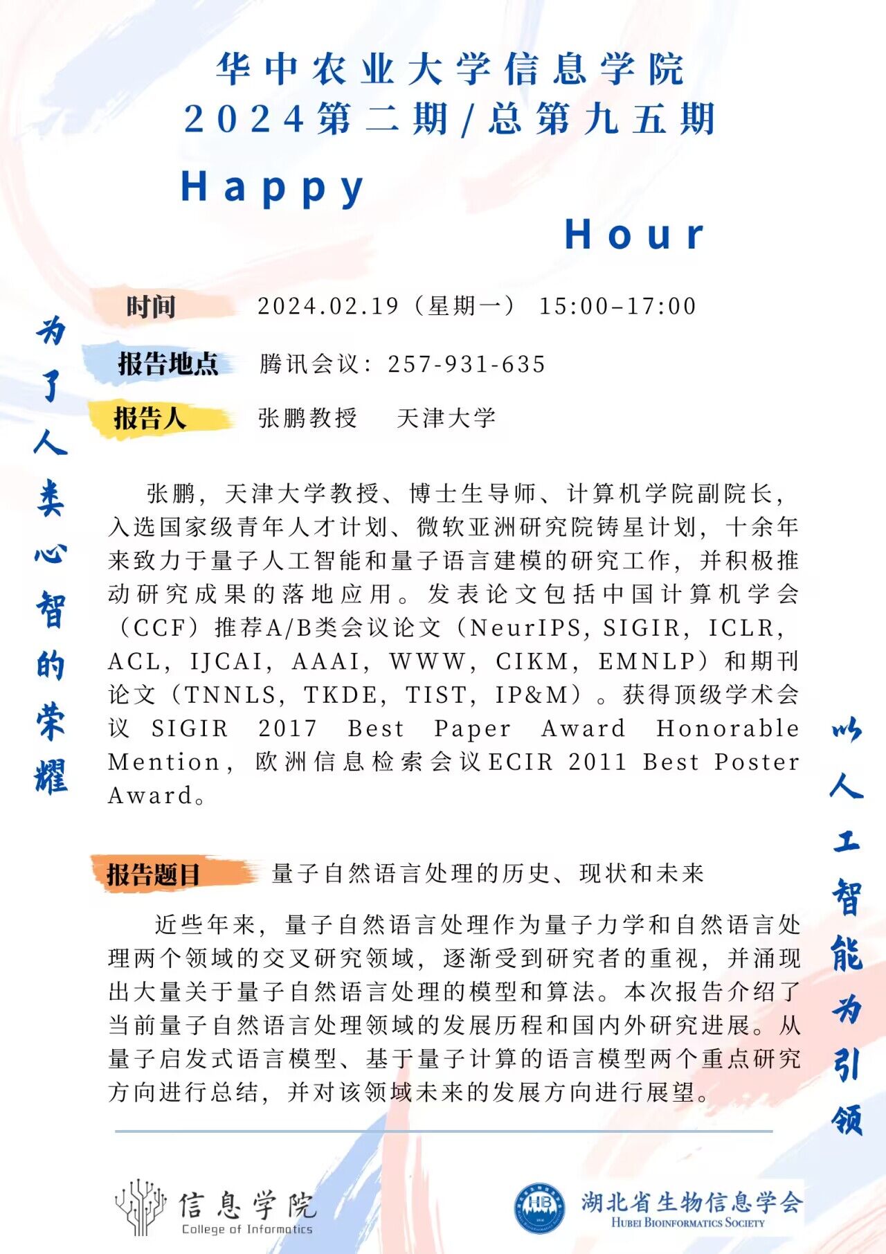 副院长,入选国家级青年人才计划、微软亚洲研究院铸星计划,十余年来致力于量子人工智能和量子语言建模的研究工作,并积极推动研究成果的落地应用。发表论文包括中国计算机学会(CCF) 推荐A/B类会议论文(NeurIPS, SIGIR,ICLR, ACL,IJCAI, AAAI,WWW,CIKM, EMNLP)和期刊论文(TNNLS,TKDE,TIST,IP&M)。获得顶级学术会议SIGIR2017 Best Paper Award Honorable Mention,欧洲信息检索会议ECIR 2011 Best Poster Award。