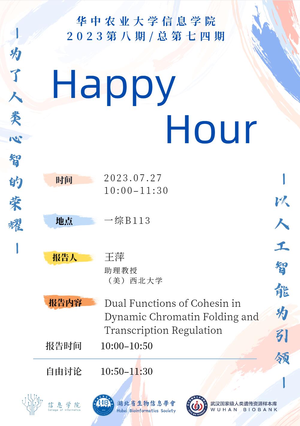 2023年第8期Happy Hour:Dual Functions of Cohesin in Dynamic Chromatin Folding and Transcription Regulation
