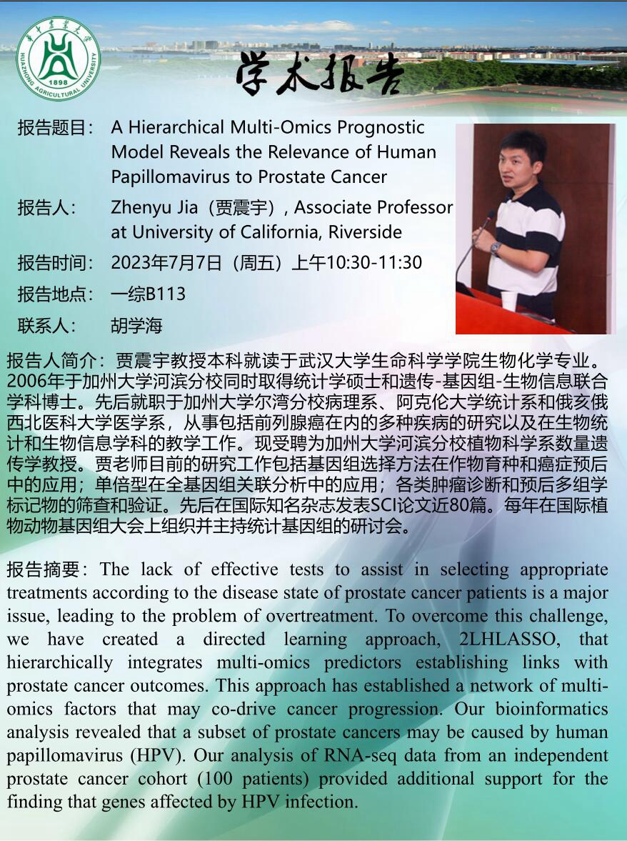 报告人简介:贾震宇教授本科就读于武汉大学生命科学今天足球比赛比分 生物化学专业。2006年于加州大学河滨分校同时取得统计学硕士和遗传-基因组-生物信息联合学科博士。先后就职于加州大学尔湾分校病理系、阿克伦大学统计系和俄亥俄西北医科大学医学系,从事包括前列腺癌在内的多种疾病的研究以及在生物统计和生物信息学科的教学工作。现受聘为加州大学河滨分校植物科学系数量遗传学教授。贾老师目前的研究工作包括基因组选择方法在作物育种和癌症预后中的应用;单倍型在全基因组关联分析中的应用;各类肿瘤诊断和预后多组学标记物的筛查和验证。先后在国际知名杂志发表SCI论文近80篇。每年在国际植物动物基因组大会上组织并主持统计基因组的研讨会。