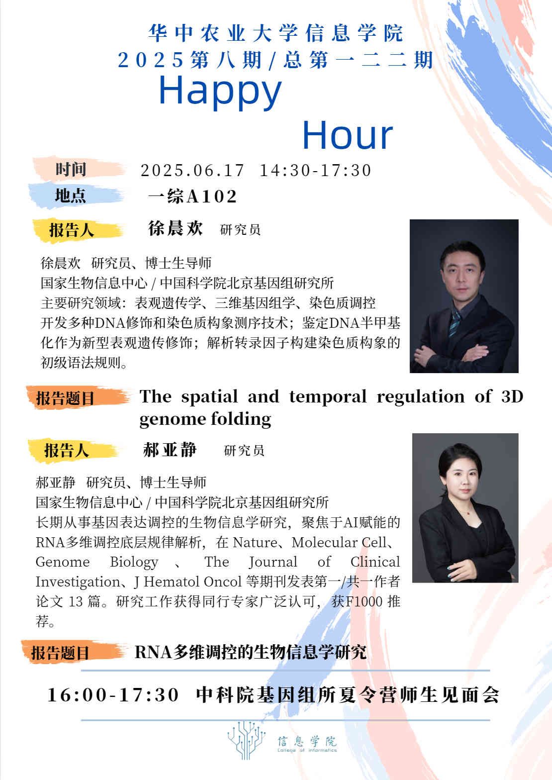 Happy Hour第122期:The spatial and temporal regulation of 3D genome folding&RNA多维调控的生物信息学研究
