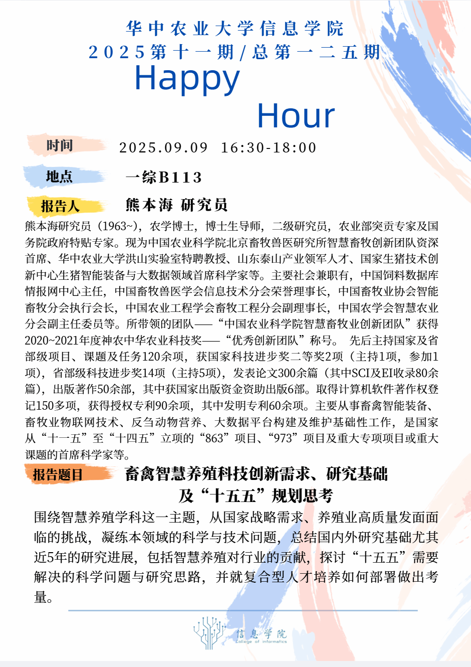 Happy Hour第125期:畜禽智慧养殖科技创新需求、研究基础及“十五五”规划思考