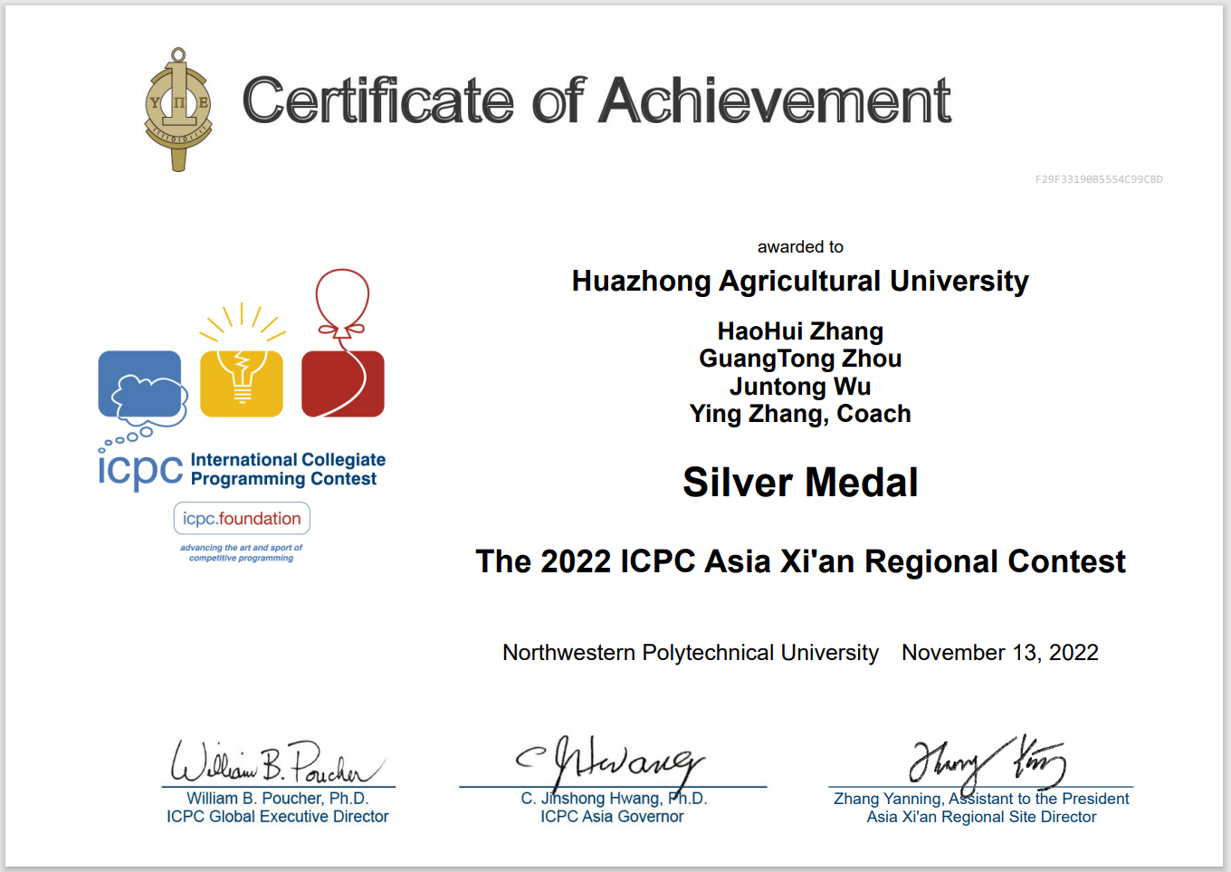 2022年第47届ACM-ICPC国际大学生程序设计大赛亚洲区域赛(西安)——银奖