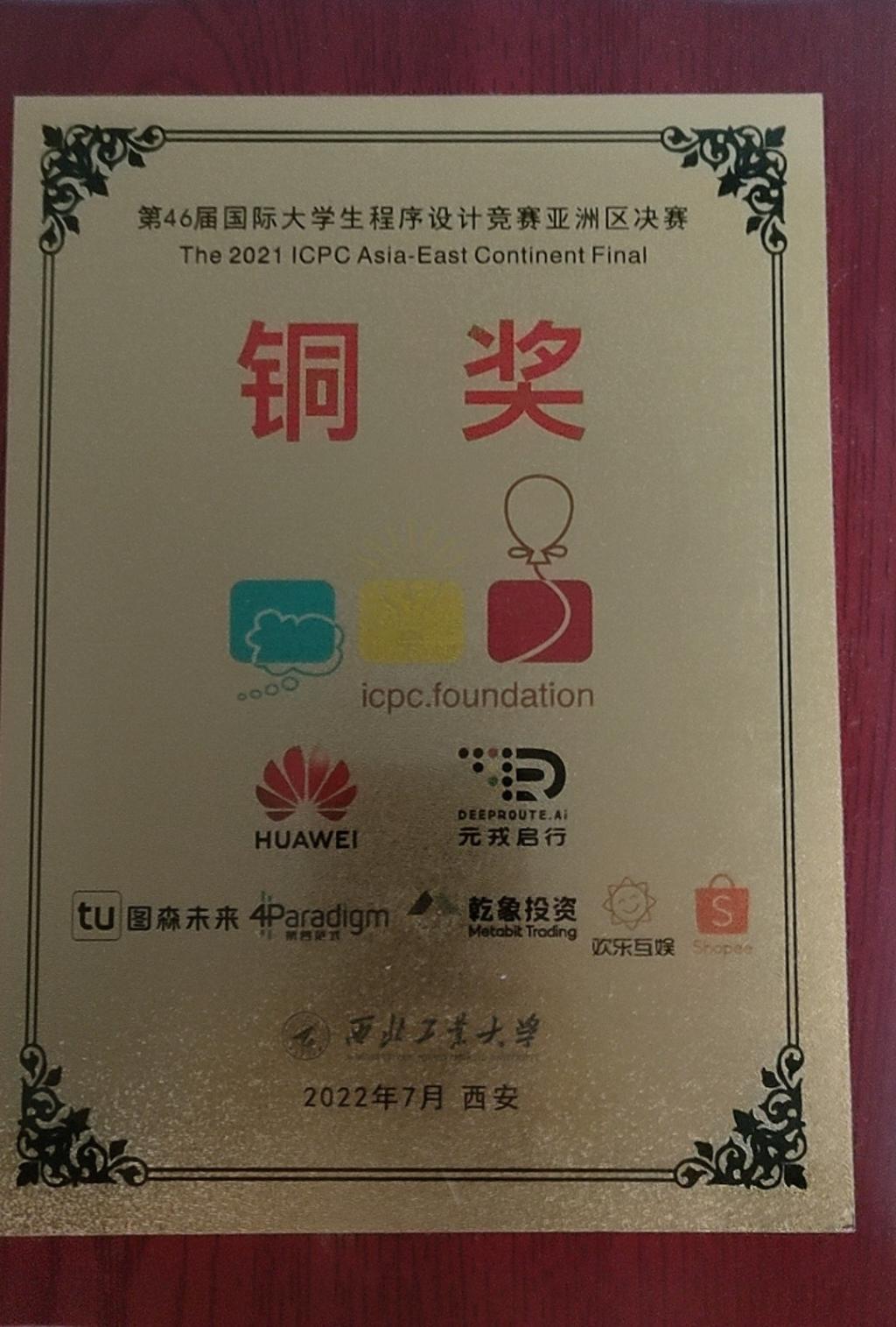 2022年第46届ACM-ICPC国际大学生程序设计大赛亚洲EC Final——铜奖