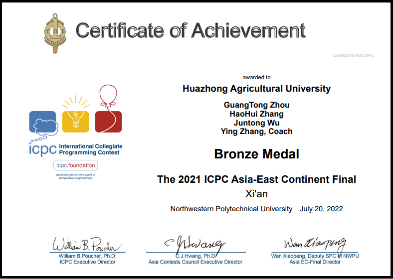 2022年第47届ACM-ICPC国际大学生程序设计大赛亚洲区域赛(西安)——银奖