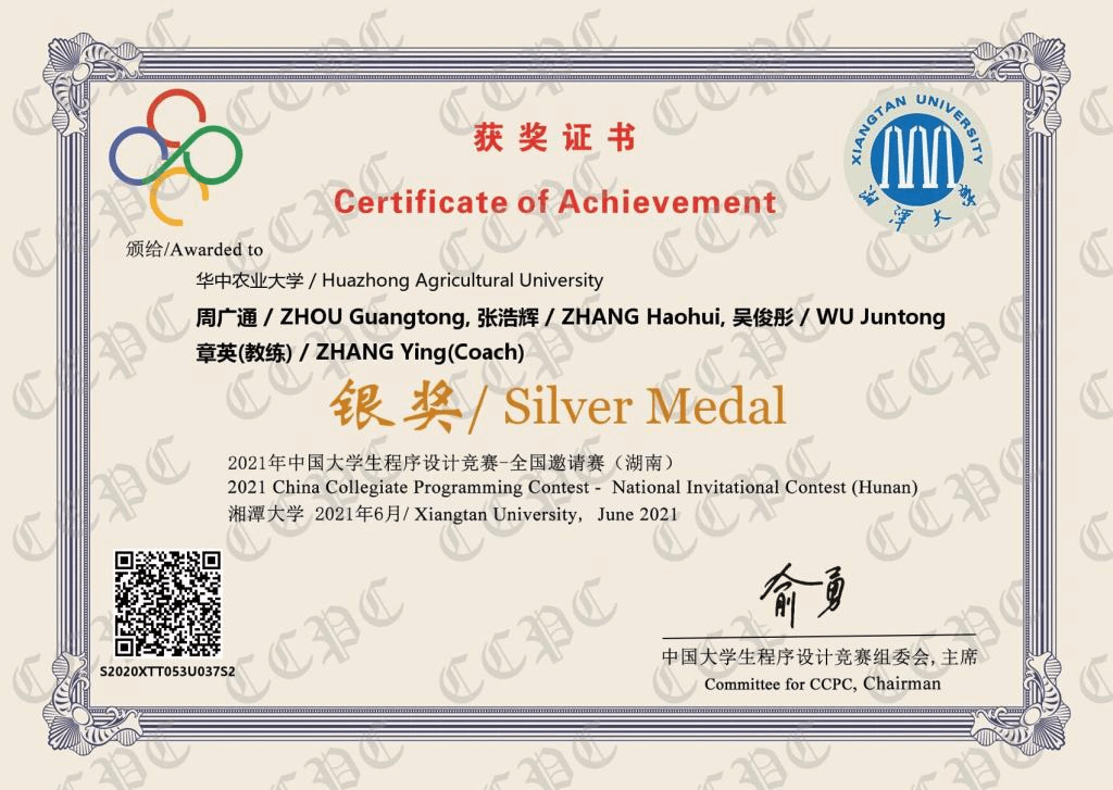 2021年CCPC中国大学生程序设计竞赛全国邀请赛(湘潭)——银奖