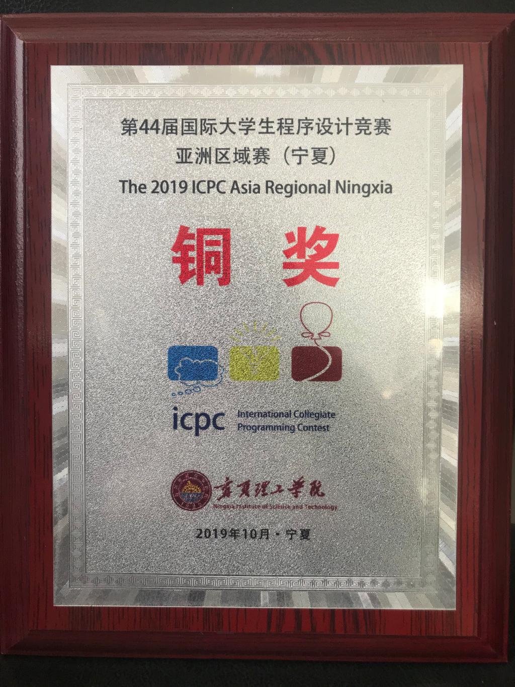 第44届ICPC国际大学生程序设计竞赛亚洲区域赛(宁夏)——铜奖