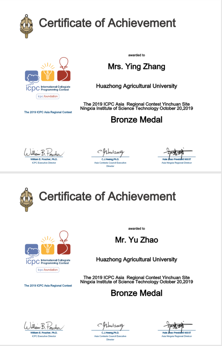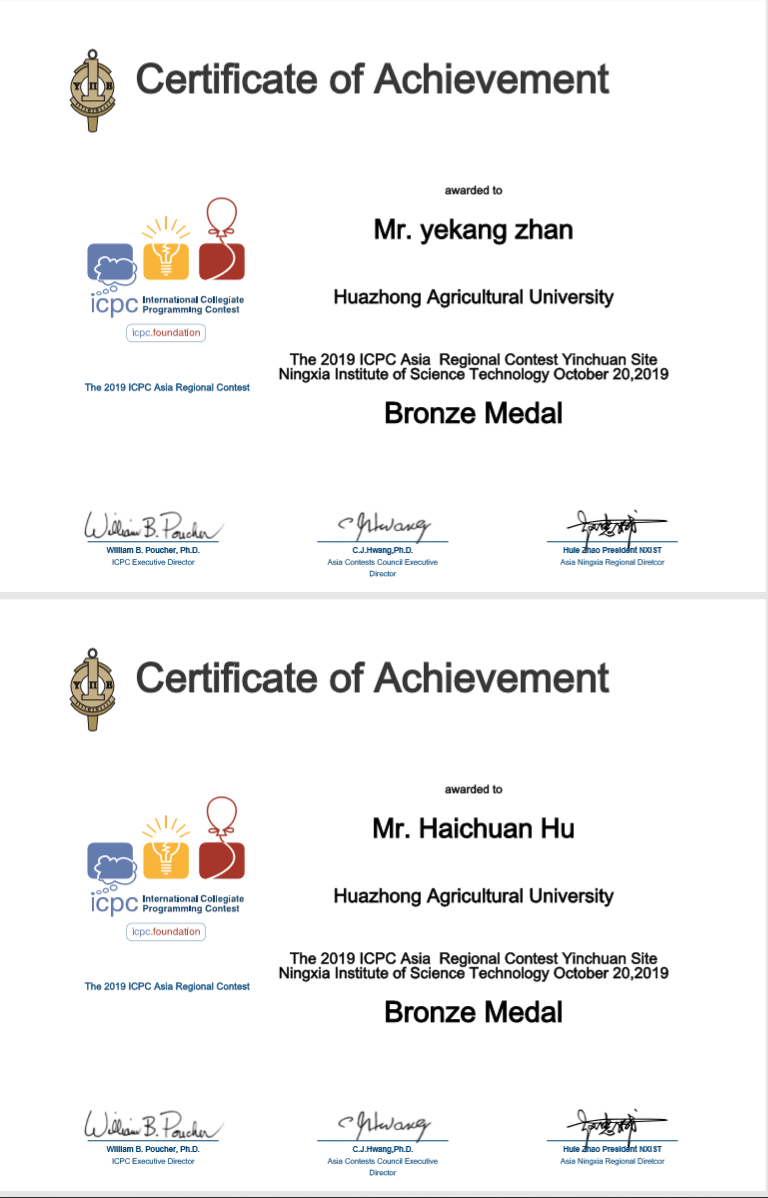 2019年第五届中国大学生程序设计竞赛(哈尔滨)——铜奖