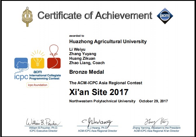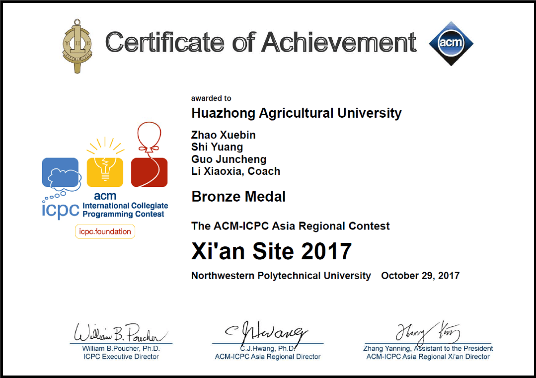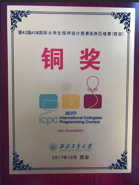 2017年ACM国际大学生程序设计竞赛亚洲区域赛西安站——铜奖