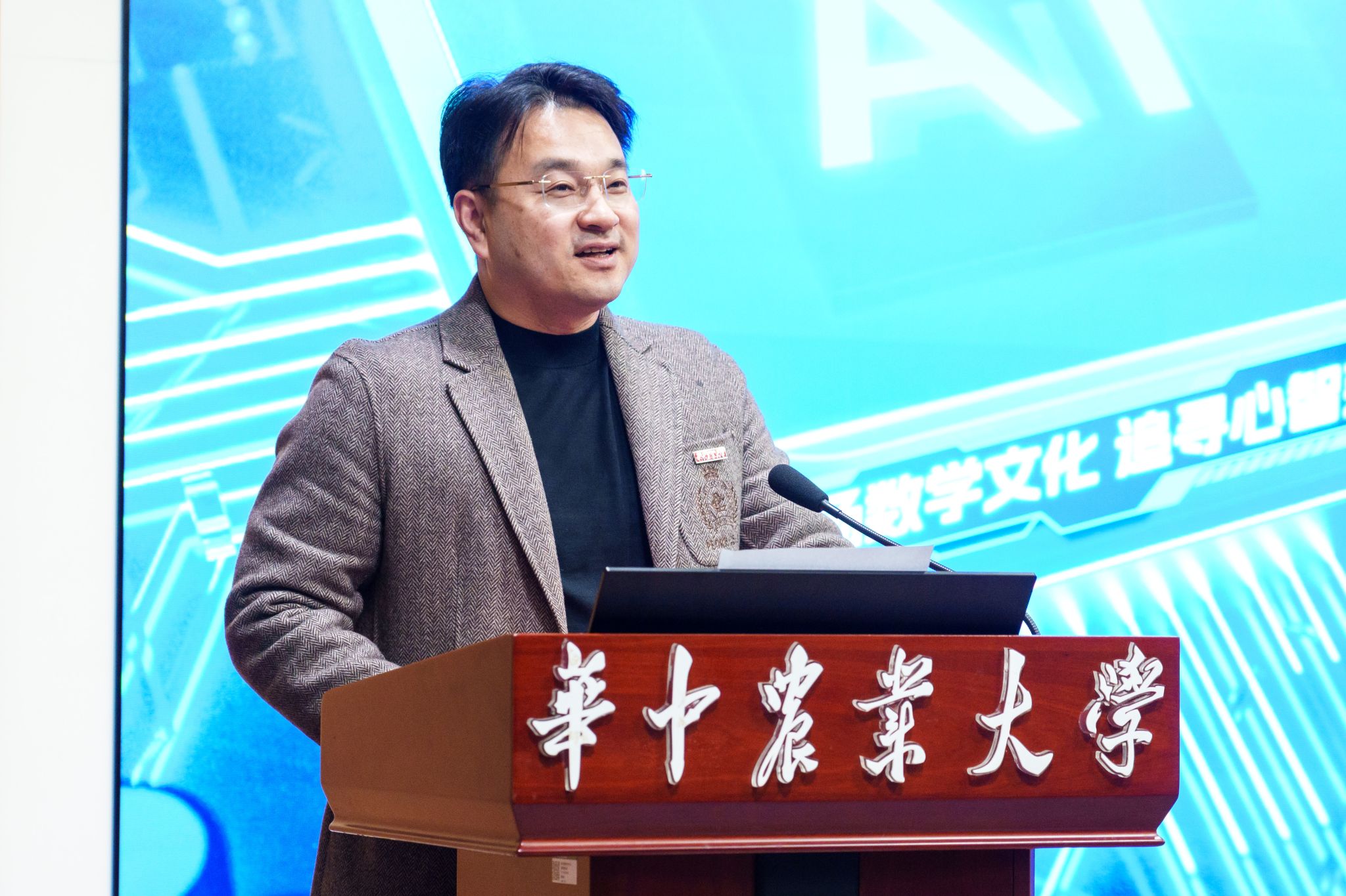 李大鹏在开幕致辞中介绍了学校办学情况,回顾了我校数学文化建设历史,并强调了数学的重要性。他谈道,今年的数学文化节以“数学与人工智能”为主题,强调数学、AI在推动科技发展、社会进步中的核心作用,它不仅仅是一场学术盛宴,更是一次激发创意和智慧的交流平台。他希望师生们在体验和探索中感受数学与人工智能深度融合的魅力,激发开创未来的磅礴力量。