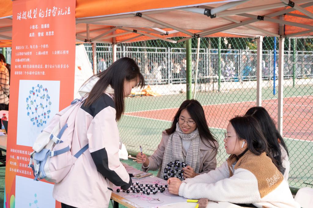 南湖新闻网讯(通讯员 谢士广)11月12日,第二运动场西南角热闹非凡,华中农业大学第六届数学文化节之“玩转数学”擂台赛在此举行,11项各具特色的数学游戏吸引了数百名师生前来体验和挑战,欢笑声不时响彻运动场。