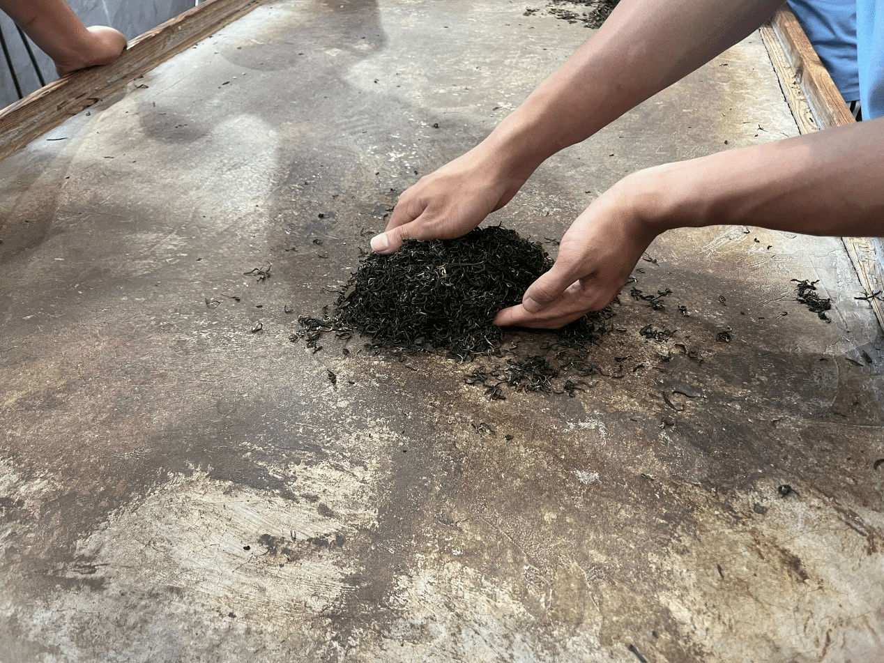 在制茶车间,恩施十大制茶师吴红林向实践队演示了“手工搓茶”环节。他介绍说:“搓茶是制作恩施玉露的重要工序,要求用手轻轻揉搓茶叶,使其逐渐成条并显现香气。这个过程不能太用力,也不能太轻,力度、方向和频率都要掌握得恰到好处,否则容易损伤茶叶或者揉不匀。”吴红林还说:“搓茶通常需要持续几十分钟,配合烘炉控温,温度一般控制在80至120摄氏度之间,这样才能保证茶叶色泽翠绿,香气浓郁。搓茶不仅考验体力,更考验制茶人的经验和专注度,是手工制茶中最考验功夫的环节之一。”