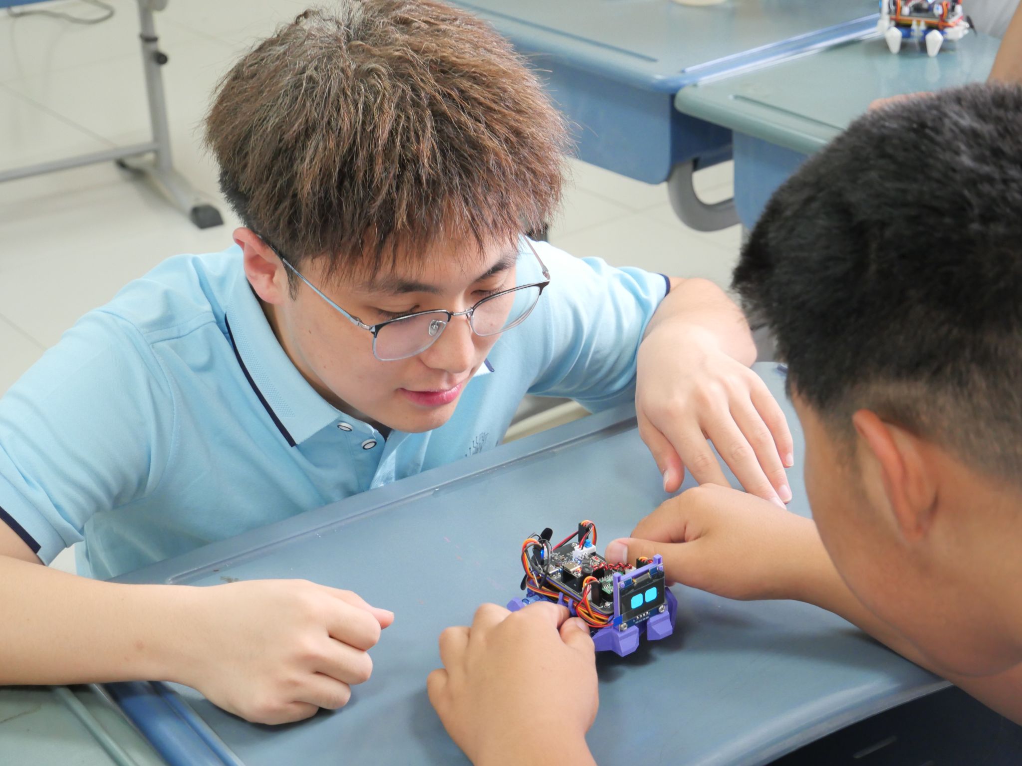 针对学校教育情况,实践队结合信息学科优势,精心筹备了科技支教课程。队员们利用编程与3D打印技术设计了一款智能机器人“小智”。队员们利用3D打印机,选用环保、安全且质地坚韧的材料,将这些模型一层一层地打印出来。经过后期的精细打磨、组装与调试,“小智”最终呈现在孩子们面前。随后,团队运用了Python语言,编写了一系列有趣的互动程序,让“小智”能够听懂孩子们的简单指令,还能做出相应的动作和表情。例如,当孩子们喊出“小智小智,唱歌”,“小智”便会在程序的控制下,灵活地摆动身体,播放预设的歌曲。